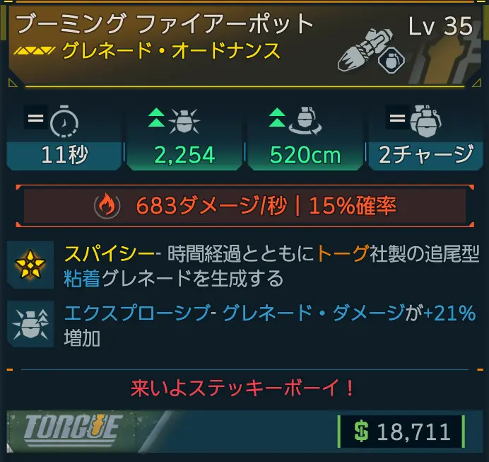 カテゴリ:アイテム オードナンス グレネード トーグ レジェンダリー