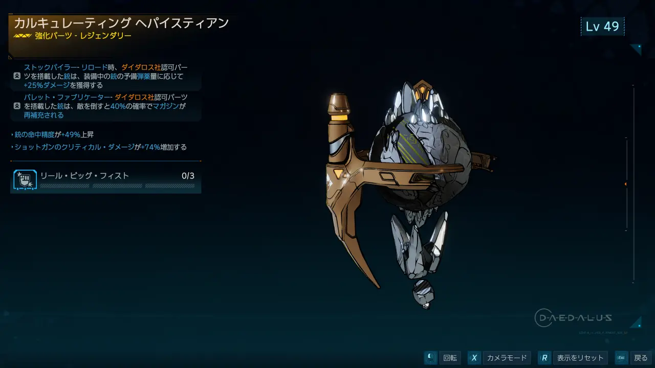 レジェンダリー強化パーツ。ダイダロス製の武器やダイダロス製の認可パーツが装着された武器に効果が適用される。