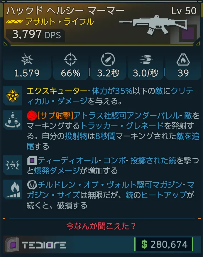 カテゴリ:アイテム 武器 アサルト・ライフル ティーディオール レジェンダリー カイロスに潜む恐怖!