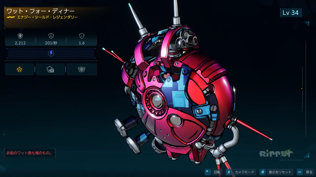 リッパー製のレジェンダリー・エナジー・シールド。ターミナス・レンジの原初のヴォルトで出現する原初のガーディアン・オリゴーがドロップする。