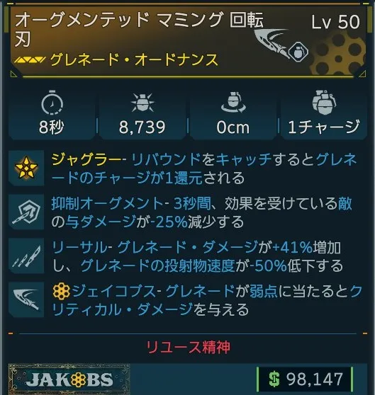 カテゴリ:アイテム オードナンス グレネード ジェイコブス レジェンダリー