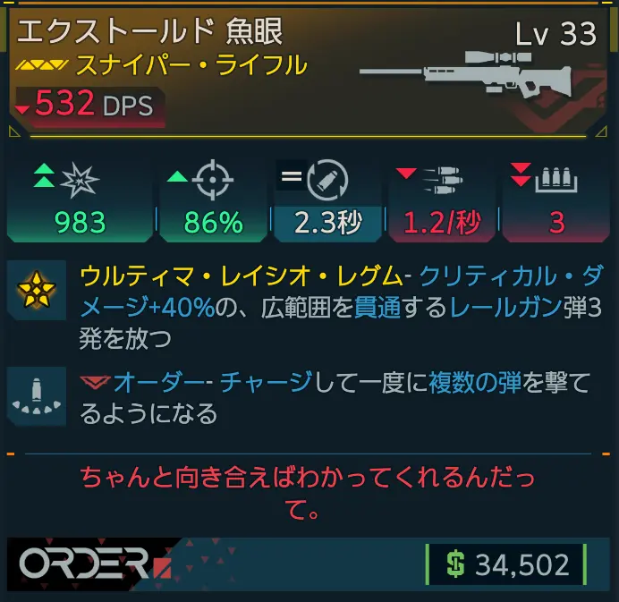 カテゴリ:アイテム 武器 スナイパー・ライフル オーダー レジェンダリー