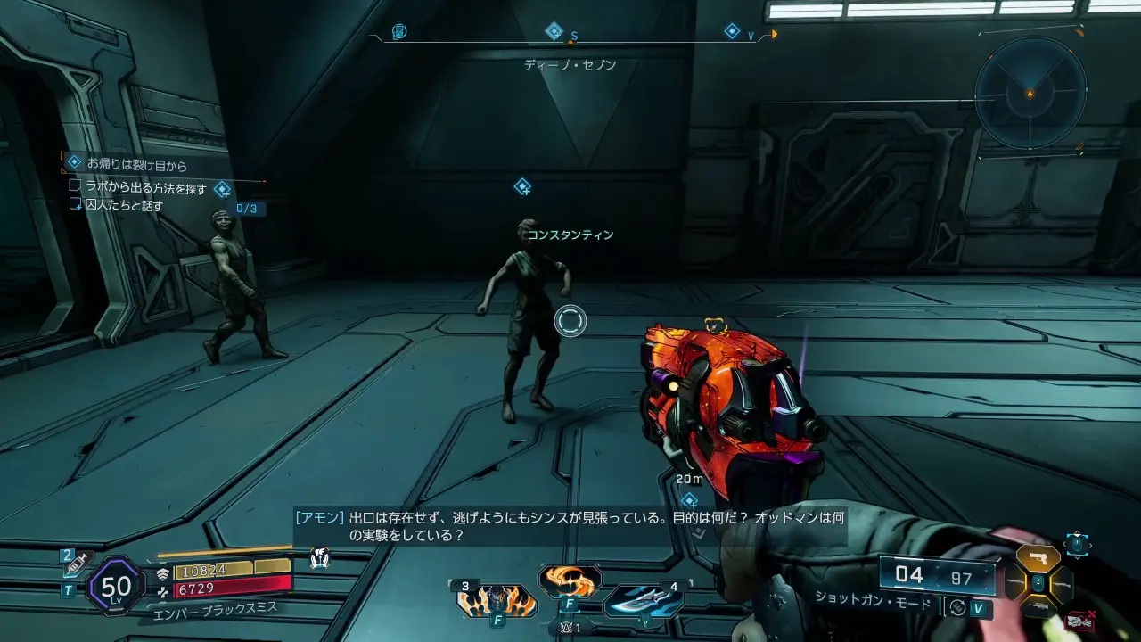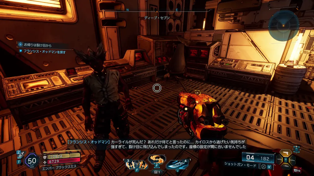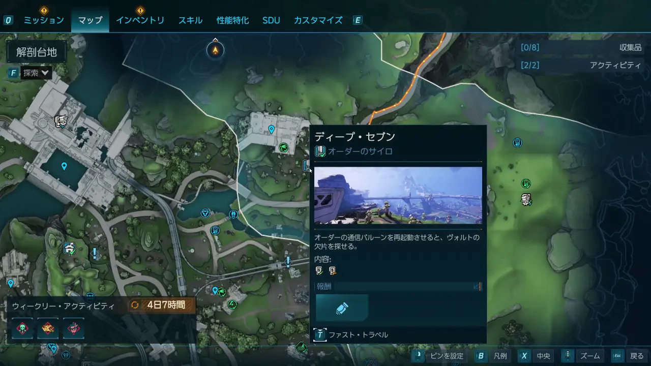 死体を調べてエコー・ログを聞いたら、フェードフィールドにあるフランシス・オッドマンの研究施設に行く。施設は解剖台地にあるオーダーのサイロ「ディープ・セブン」のすぐ下にある。