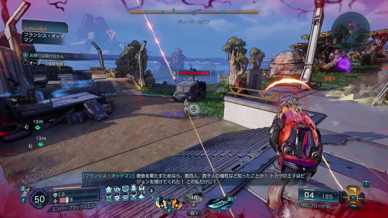 パーツを回収したらオッドマンのところに戻って装置を修理し、グラップルを使って裂け目に飛び込む。テレポートした先ではオーダー兵が待ち構えているので、まずは全ての敵を倒す。