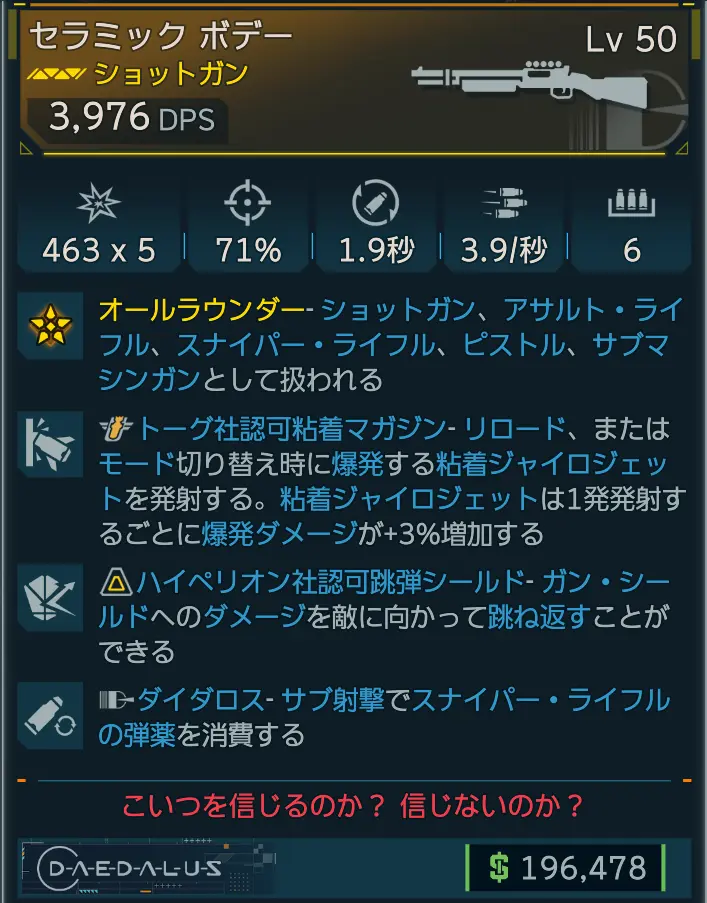 武器にボデーを選んでいるのは、単純にダメージを上げやすいからです。