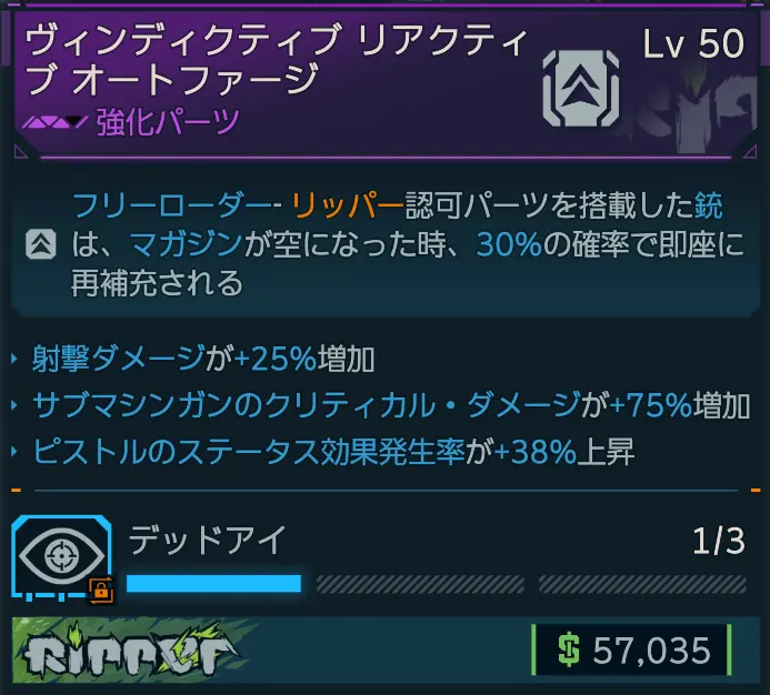 - 強化パーツのオプションでクリティカル・ヒット・ダメージ+75%(もしかしたら150%行くかも)