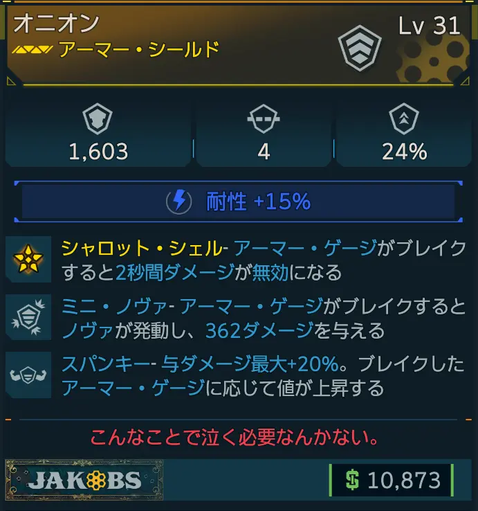 カテゴリ:アイテム シールド アーマータイプ ジェイコブス レジェンダリー