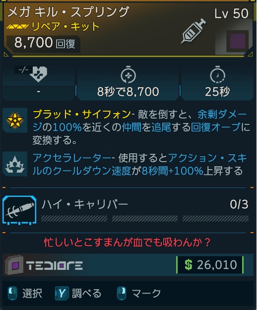 キル・スプリングは、『ボーダーランズ4』で入手可能なリペア・キットの1つ。