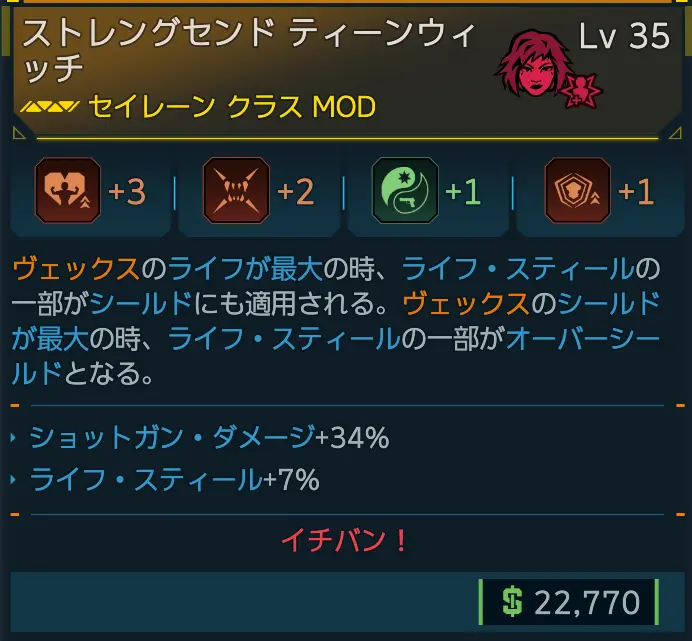 カテゴリ:アイテム クラスMOD セイレーン レジェンダリー