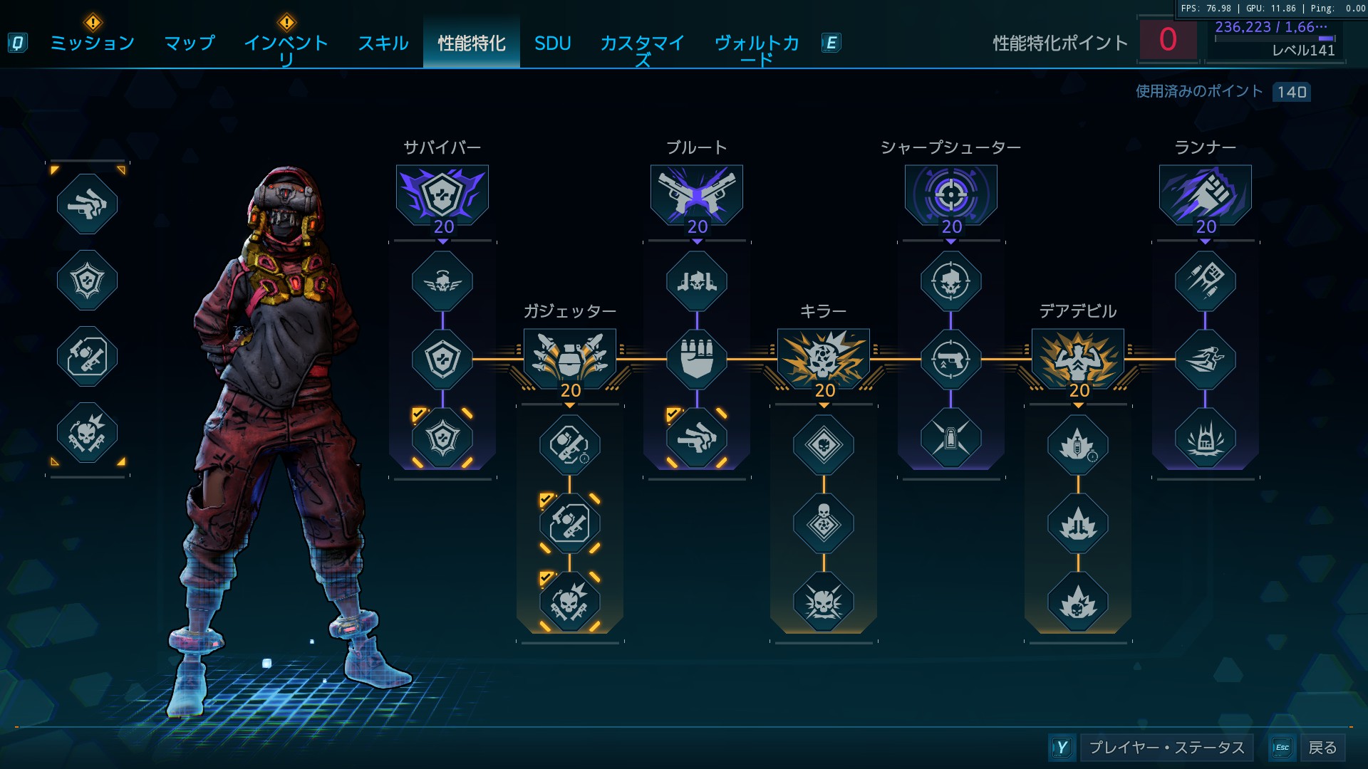 各種パッシブ効果が銃・重火器どちらにも載るため特定武器に固執せずあらゆる武器種に対応できるオールラウンダーに仕上がっています。