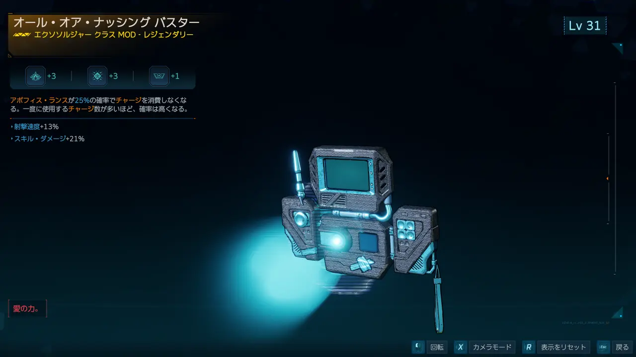 履歴一覧 差分 を表示 現在との差分 を表示 ソース を表示 バスター へ行く。 1 (2025-09-20 (土) 16:20:14) 2 (2025-09-26 (金) 13:37:38) カテゴリ:アイテム クラスMOD エクソソルジャー レジェンダリー バスター(Buster) 愛の力。 Es un acto de amor. 概要 カテゴリクラスMOD クラスエクソソルジャー レア度レジェンダリー スキル強化コンダクティボダブルアタックラス・ハラス畏敬 特性 アポフィス・ランスが25%の確率でチャージを消費しなくなる。一度に使用するチャージ数が多いほど、確率は高くなる。 入手情報 ドロップ:原初のガーディアン・オリゴー ドロップ:ワールドドロップ バスターは、『ボーダーランズ4』で入手可能なクラスMODの1つ。 概要 レジェンダリーのラファ用クラスMOD。 詳細・運用 アイテムカード 画像を追加する 備考 コメント 最新の10件を表示しています。 コメントページを参照 発動確率はチャージ段階×25%の模様 素ランスの場合サブスクバッテリーで4段チャージにすれば無限に撃てるが良くも悪くもサブスクバッテリーが必須 雷獣は未確認だが少なくともゴルゴンでチャージ消費が時間制になるとほぼ機能しなくなる -- 2025-09-24 (水) 17:24:58 なんかダブルアタック5のためだけに採用してナイフ無双してる人がいた。悪いことを思いつくヴォルトハンターは何処にでもいるもんだ。 -- 2025-09-25 (木) 13:38:54 畏敬がつくときもあります。 確定クリビルド作る人は安心して掘って -- 2025-09-26 (金) 08:53:16 特性以外は他ツリーでも有用なスキルに割り振られるから青ツリーじゃなくても採用していいぐらい強い。 -- 2025-10-02 (木) 11:38:55 畏敬とダブルアタックっていう超強力スキルがつくのがヤバイ。アークナイフダブルアタックや、バレットバディを使わずに確定クリティカルができたりと、夢が詰まってるレジェMOD -- 2025-10-02 (木) 16:49:36 でねぇ・・・ -- 2025-10-05 (日) 14:47:11 ドライバーは出るのにこいつはでねぇ。 -- 2025-11-06 (木) 04:46:17 WFD狙って掘ってたら嫌でも出るよ -- 2025-11-06 (木) 08:50:07 新規コメント追加 コメントを送信