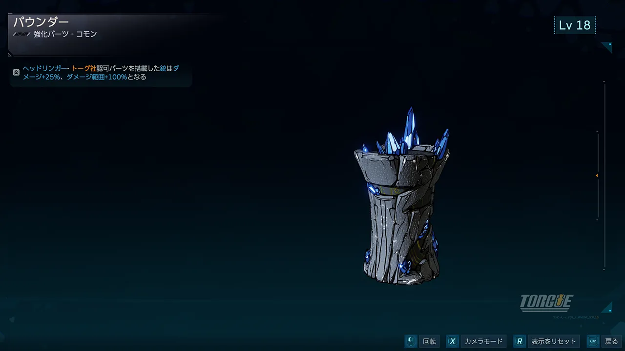 トーグ社の武器トーグ社の認可パーツを搭載した武器は、射撃ダメージが25%、ダメージ範囲が100%上昇する。