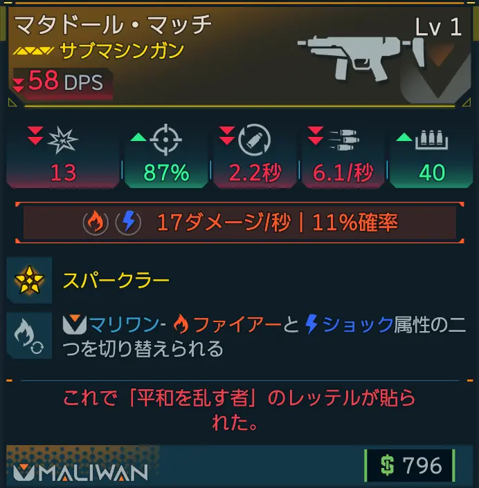 カテゴリ:アイテム 武器 サブマシンガン マリワン レジェンダリー