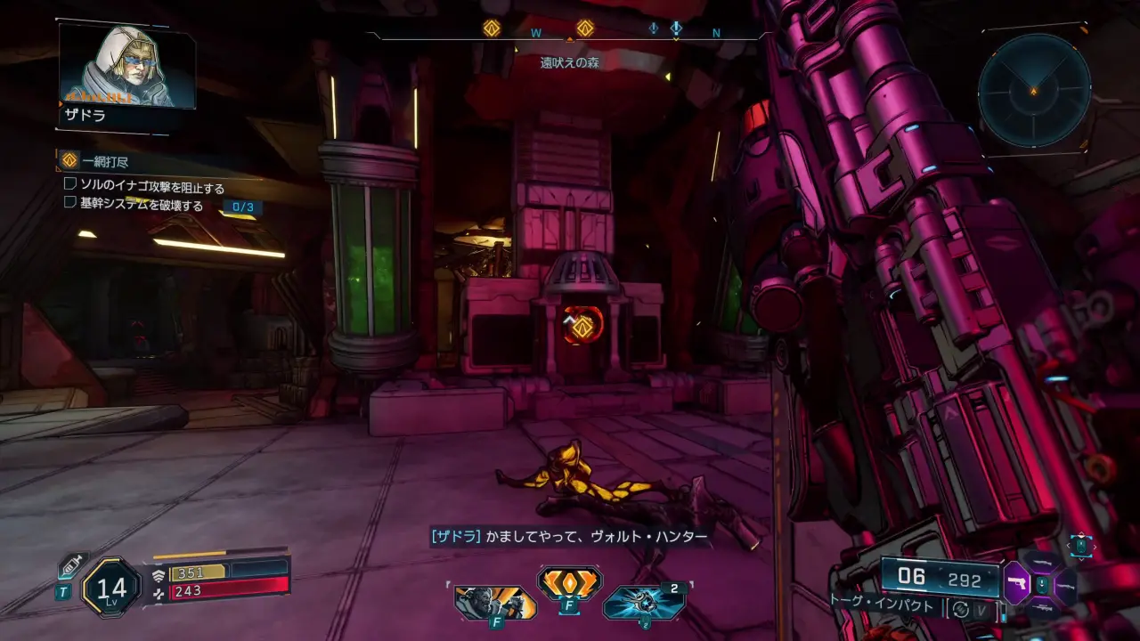 プロセッサを破壊したらザドラと合流し、一緒にネットワークターミナルを制圧する。エリアの制圧後、行く手を阻む生体装甲のドアを一度攻撃した後にダクトを通って奥のラボに行く。ラボにはシンスがいるので全て倒そう。