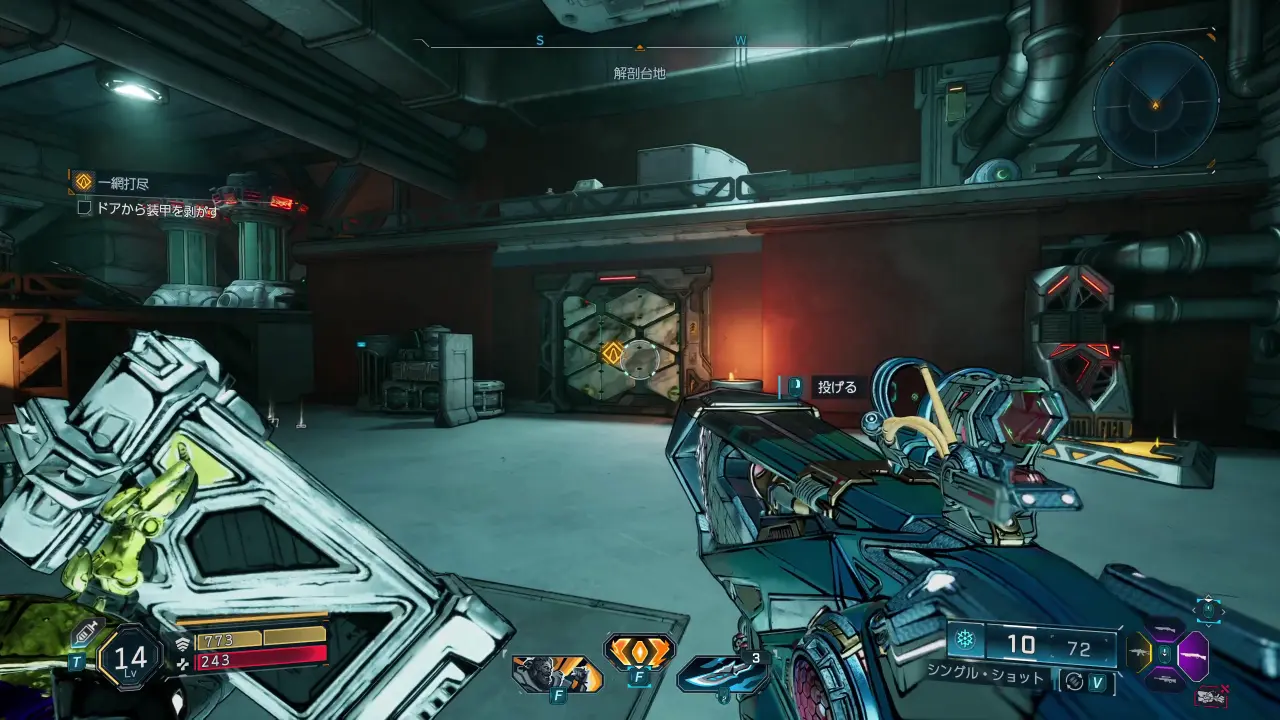 ラボを制圧したらイナゴガスのサンプル配布機を使用し、出てきたキャニスターをグラップルで掴んで装甲ドアに投げる。ガスが当たるとドアの装甲がなくなって通れるようになるので、再びザドラと合流する。