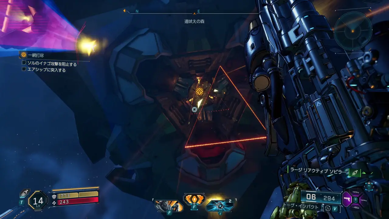 バイオバルクヘッドを倒して外に出るとエアシップが飛び去っていくので、追いかけてアウトバウンダーズの拠点へと戻る。この際、発射台のファストトラベルは使用できないので、一旦近くにファストトラベルしてから向かうといい。近くにはオーダーのサイロが1つあるので、それがファストトラベル地点として使える。