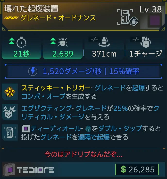 カテゴリ:アイテム オードナンス グレネード ティーディオール レジェンダリー