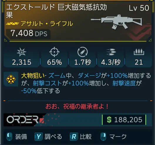 カテゴリ:アイテム 武器 アサルト・ライフル オーダー レジェンダリー