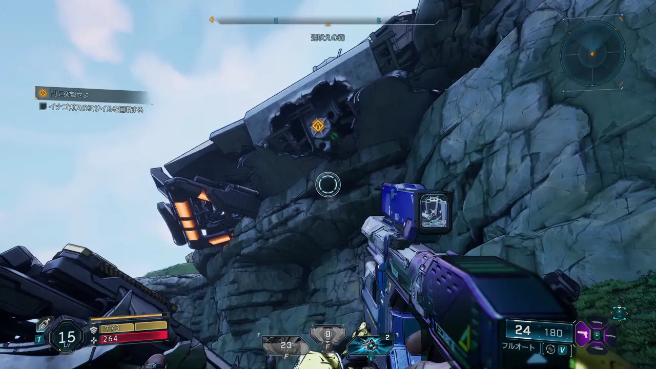 リッパーを殲滅し終えたら、崖上に引っかかっているミサイルをグラップルで落とす。