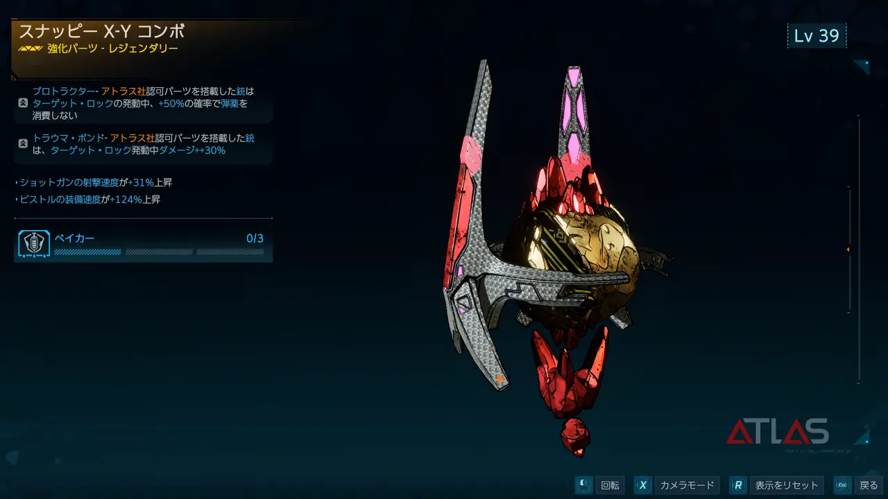 レジェンダリー強化パーツ。アトラス製の武器やアトラス製の認可パーツが装着された武器に効果が適用される。