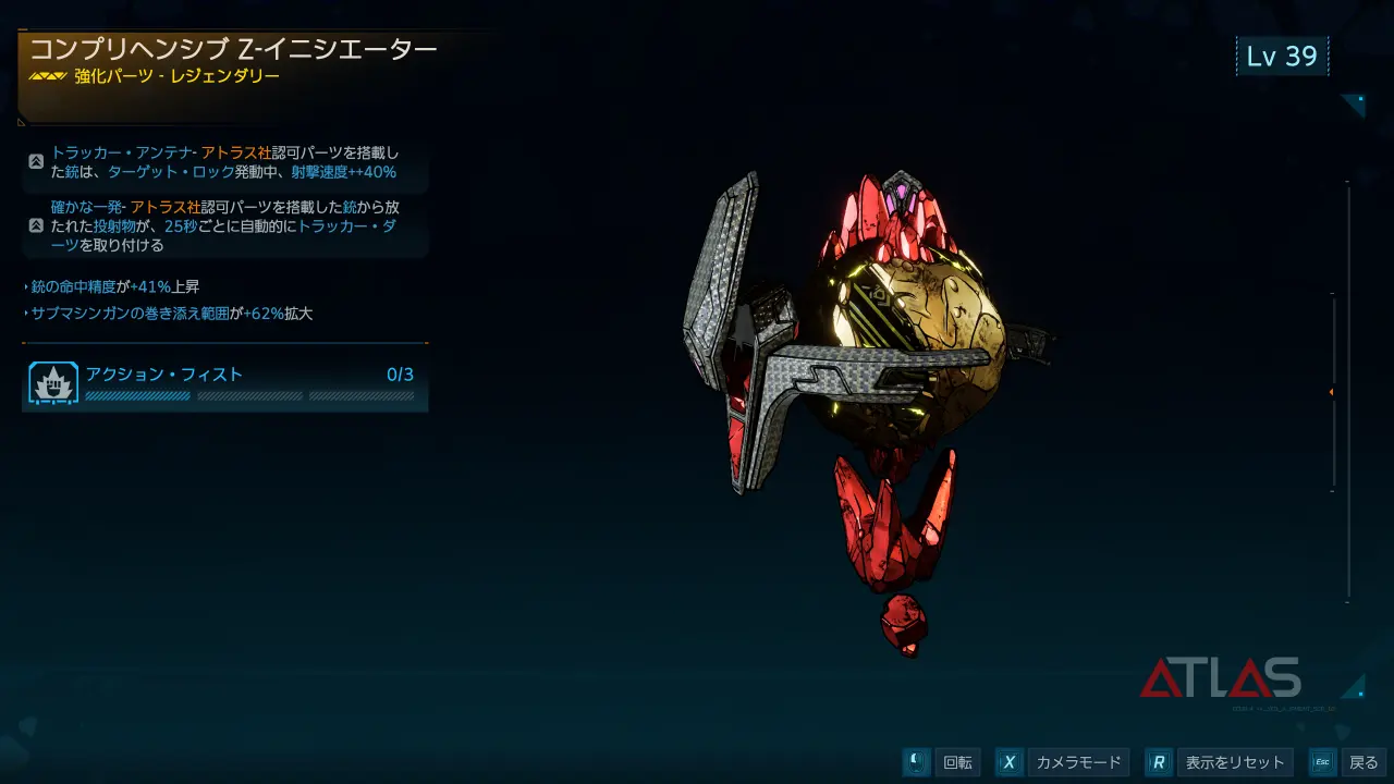 レジェンダリー強化パーツアトラス製の武器アトラス製の認可パーツが装着された武器に効果が適用される。