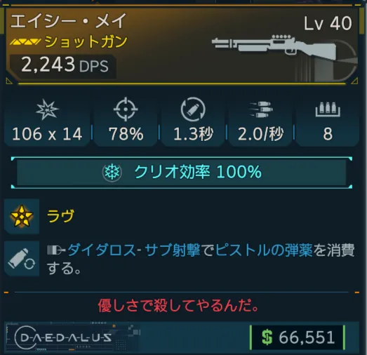 カテゴリ:アイテム 武器 ショットガン ダイダロス レジェンダリー