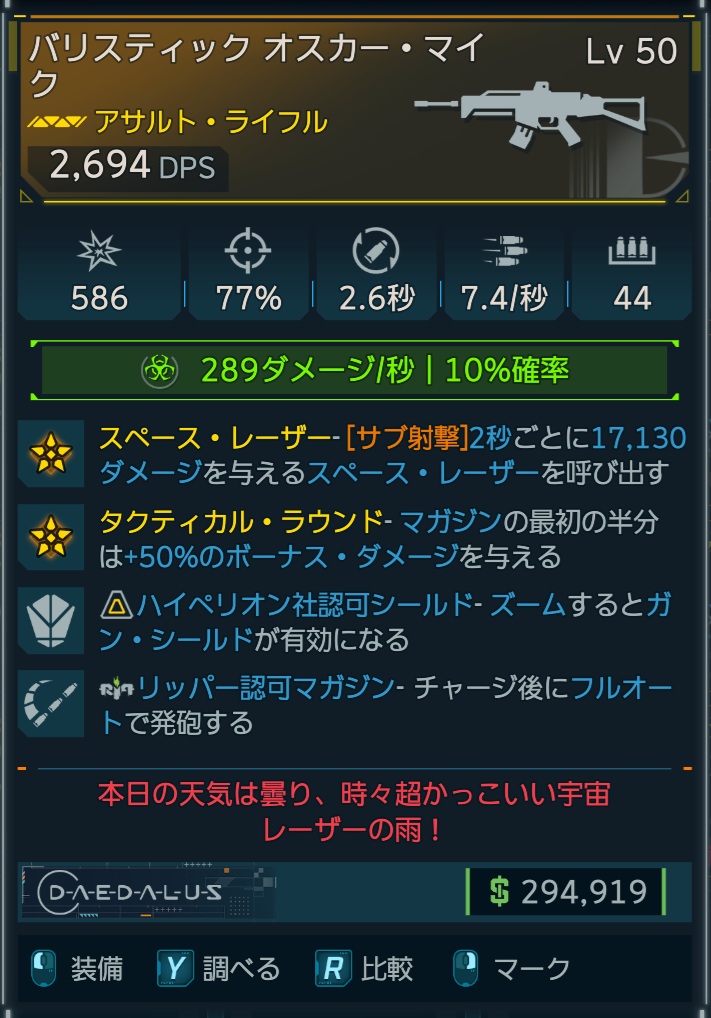 カテゴリ:アイテム 武器 アサルト・ライフル ダイダロス レジェンダリー