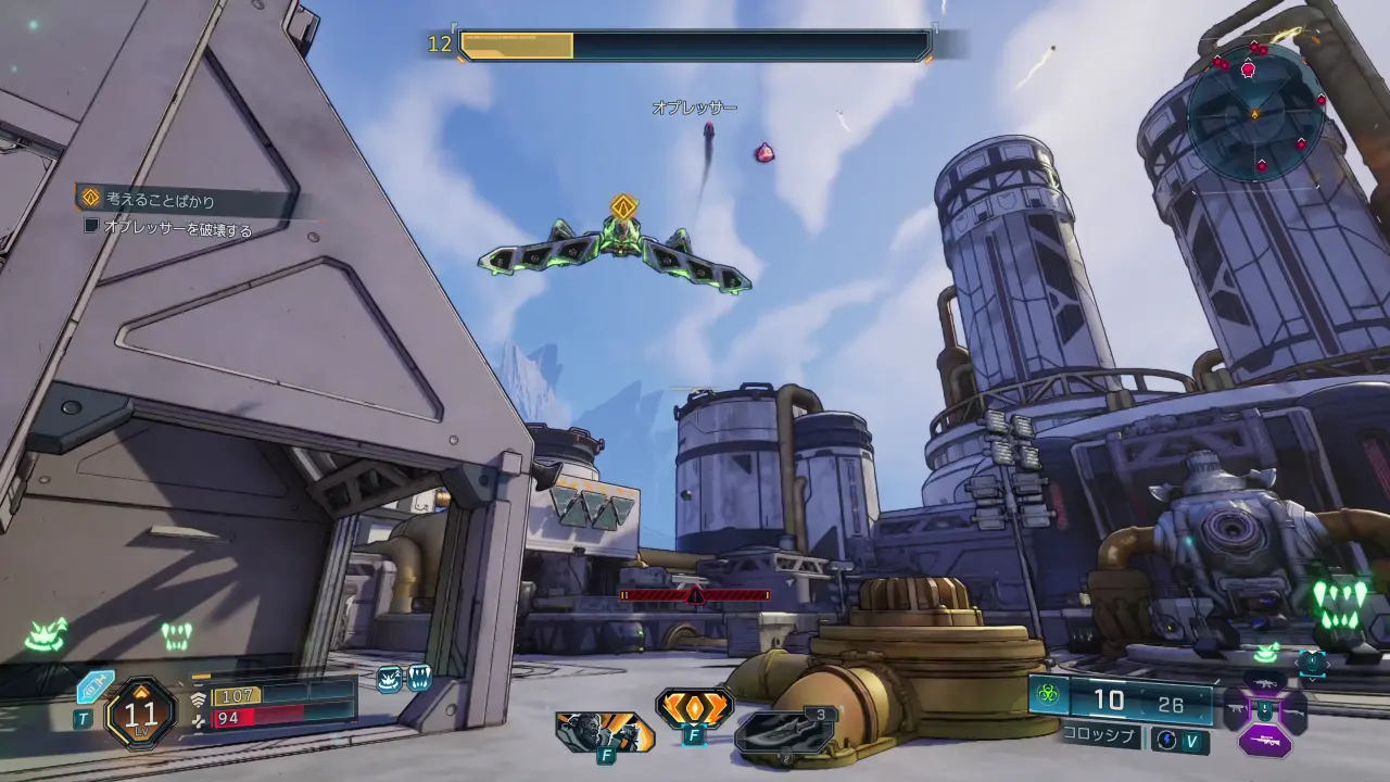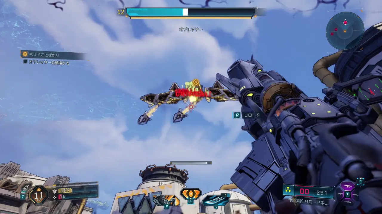 オプレッサーはヴォルト・ハンターの頭上を旋回しつつ、制圧射撃を行ってくる。足を止めると危険なので、常に動きながら戦えるようにしたい。また、ミサイルも飛ばしてくるので、その際は遮蔽を利用したり、グライドやダッシュで避けたりしよう。
