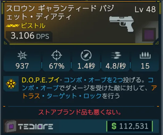 カテゴリ:アイテム 武器 ピストル ティーディオール レジェンダリー