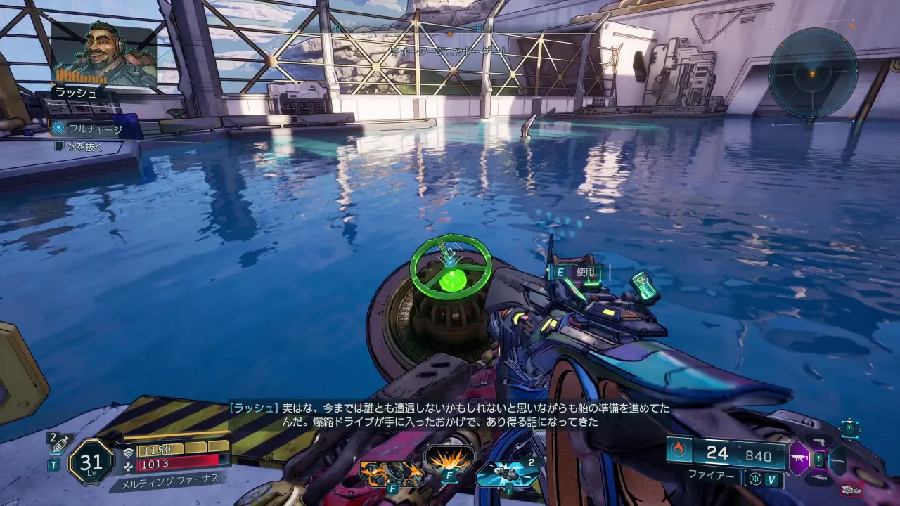 中に入ったら、爆縮ドライブを護衛しながら進み、ある程度進むと一旦別れて進むことになるので、そのまま貯水池へと向かう。貯水池に着いたら水を抜き、出てきた敵を倒す。