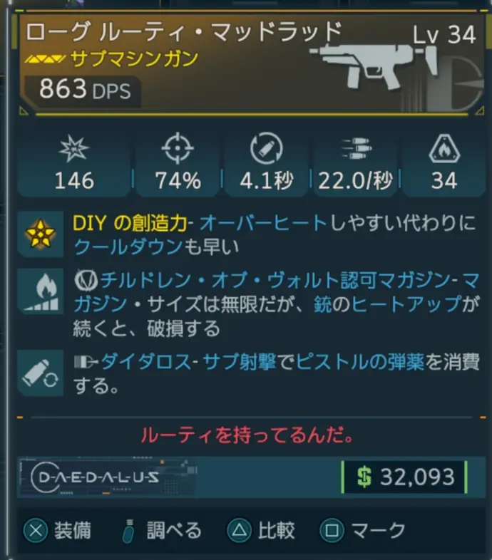 カテゴリ:アイテム 武器 サブマシンガン ダイダロス レジェンダリー