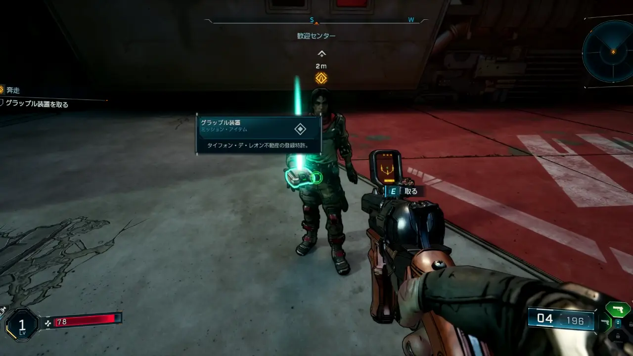 グラップルは特定の場所にしか引っ掛けられないので、フック位置に照準を合わせて使用しよう。