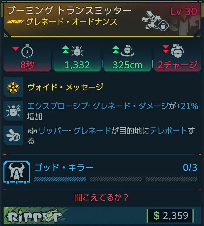 カテゴリ:アイテム オードナンス グレネード リッパー レジェンダリー ギラギラグローリーパック