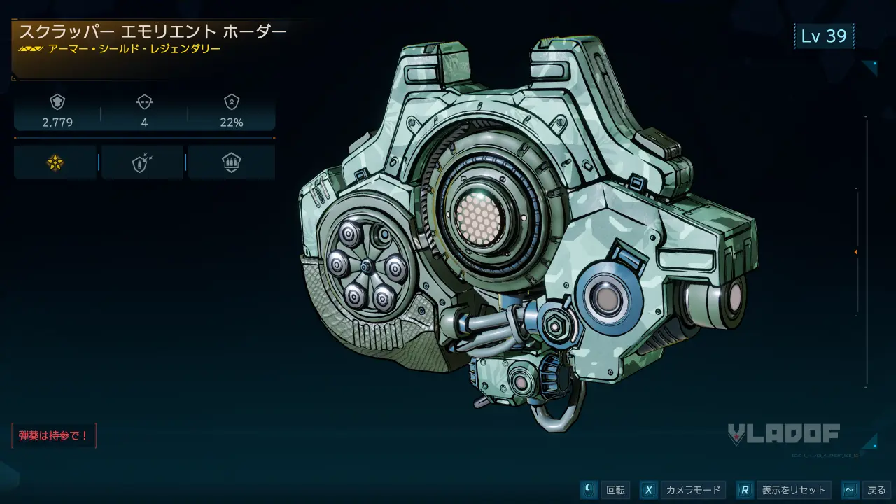 ブラドフ社製のレジェンダリー・アーマー・シールド。ターミナス・レンジでのメイン・ミッション「山影」で登場するスカイスパナ・クラッチがドロップする。