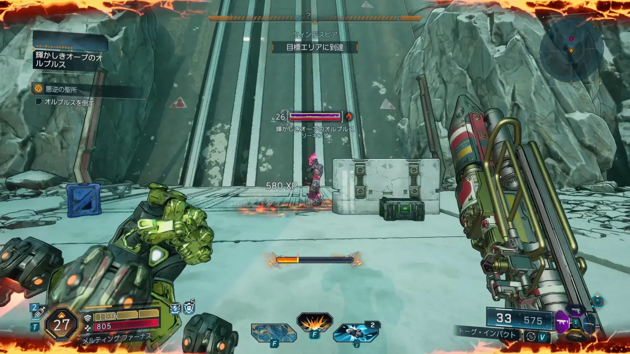 暗い話題から直接続いているので、まずはリクターの要塞につながる橋をわたる。オーダー兵を倒しながら橋を進むと、突き当りで実験体の「輝かしきオーブのオルブルス」が出現するので倒す。