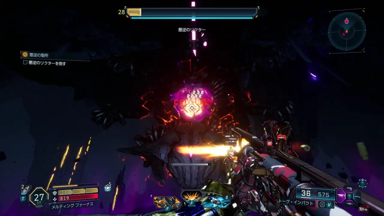 悪逆のリクターは露出した本体か、宙に浮く手を破壊すると露出するコアにのみダメージが通るので、攻撃できるタイミングを逃さないようにしよう。リクターの攻撃手段はフェーズの壁を様々な形で飛ばしてくる面攻撃が多いので、ジャンプで避けたり、隙間を縫って避けたりする必要がある。