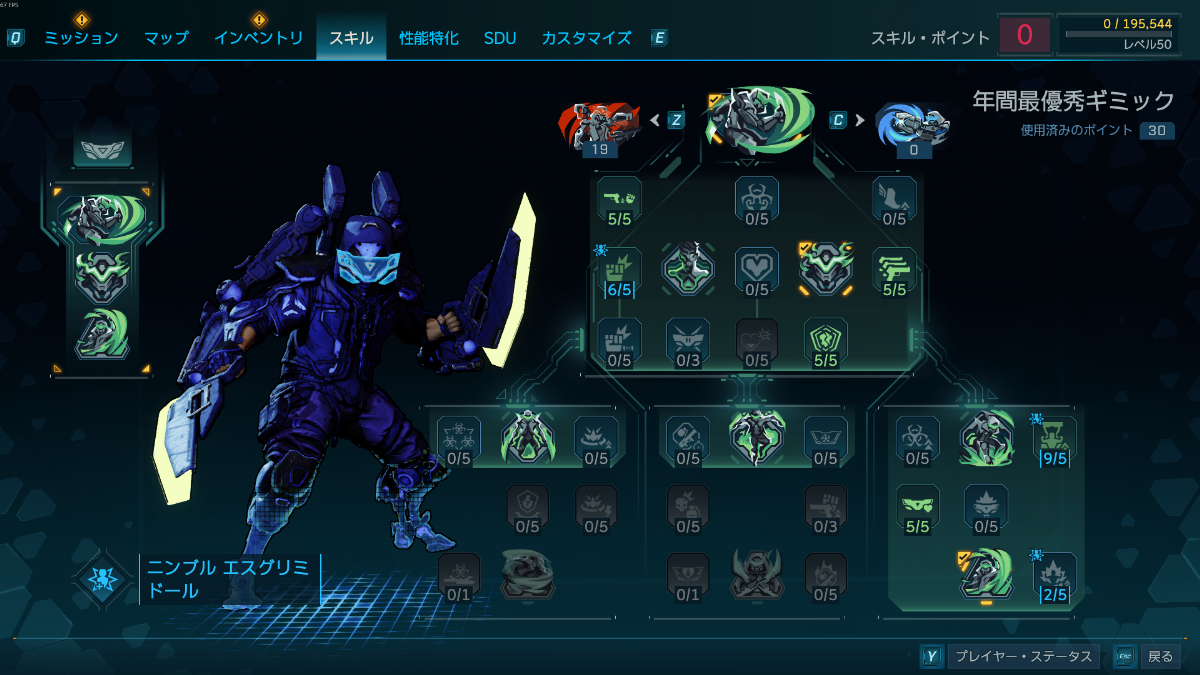 本ビルドのコンセプトから言えば輪ゴムマン 3やゴッド・キラー 2が候補に入りそうだが、これらの効果がフィスト系の大幅な火力増加を捨ててまで採用するほど大きくないことと、他のスキルや装備で既に生存力は確保出来ていることから不採用とした。
