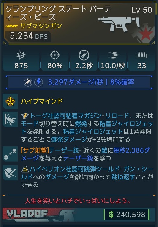 カテゴリ:アイテム 武器 サブマシンガン ヴラドフ レジェンダリー