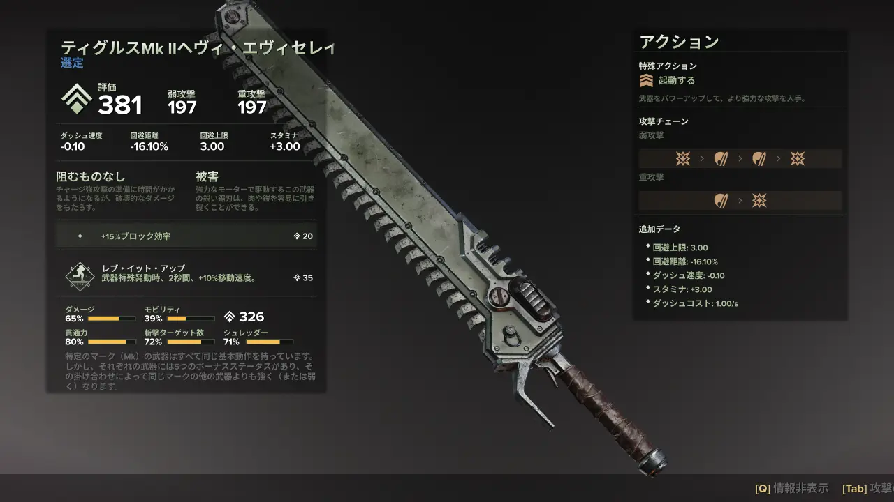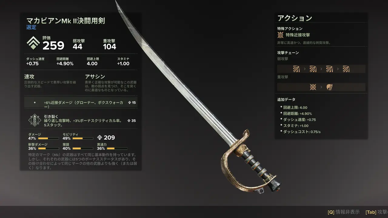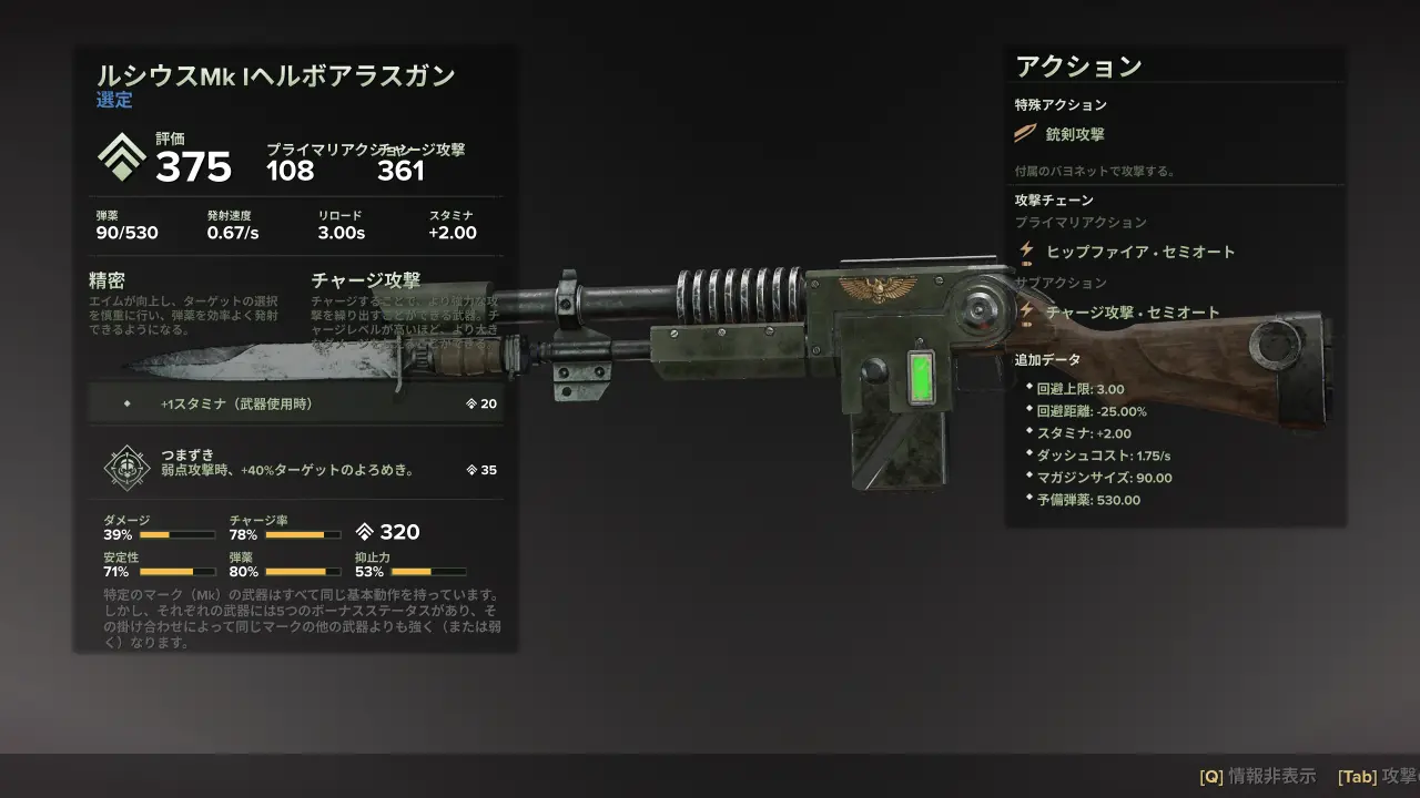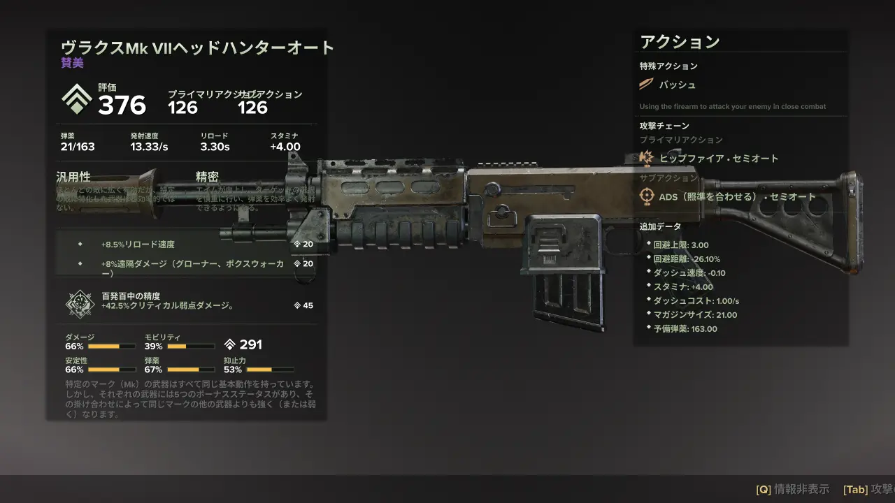 • 武器の詳細画面を16:9のアスペクト比で撮影したものを使用する。