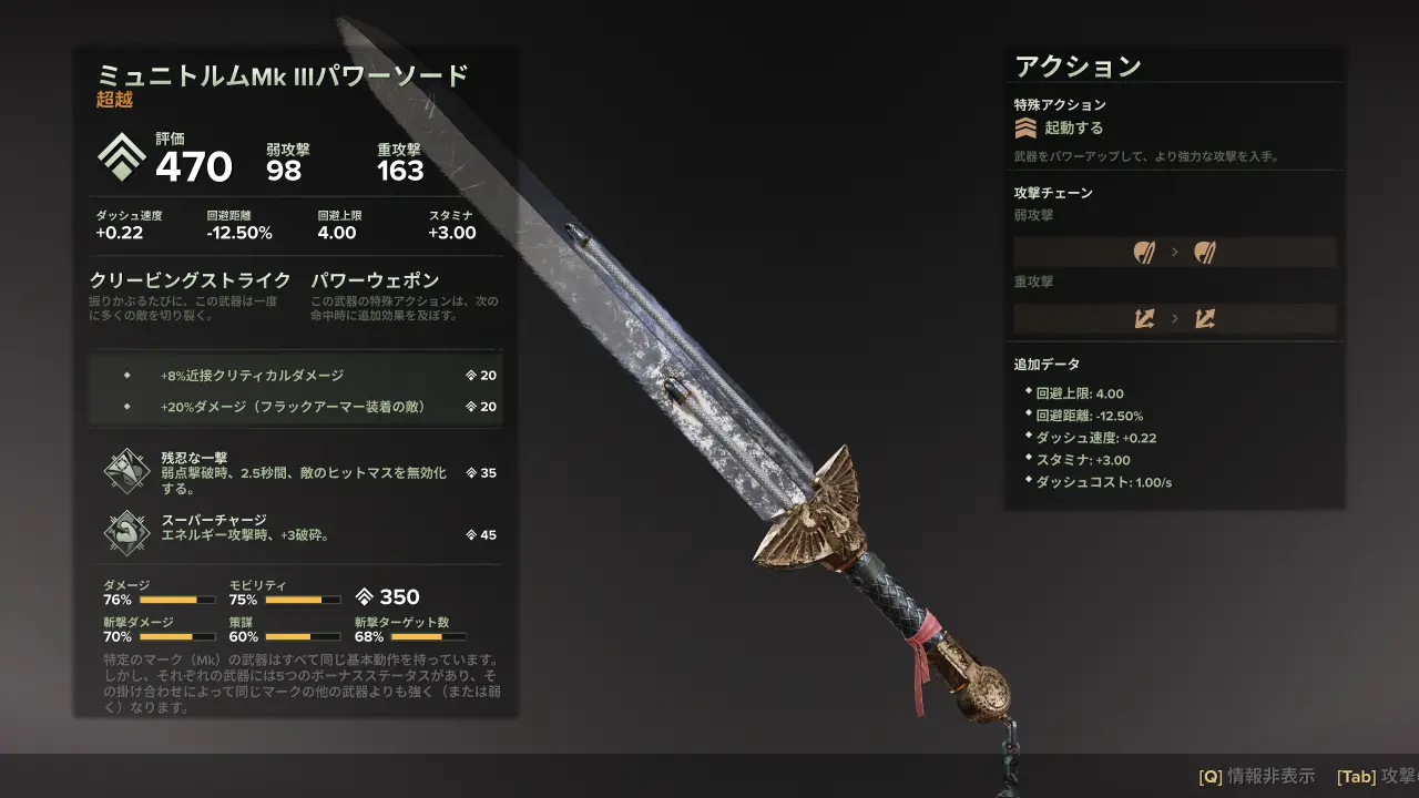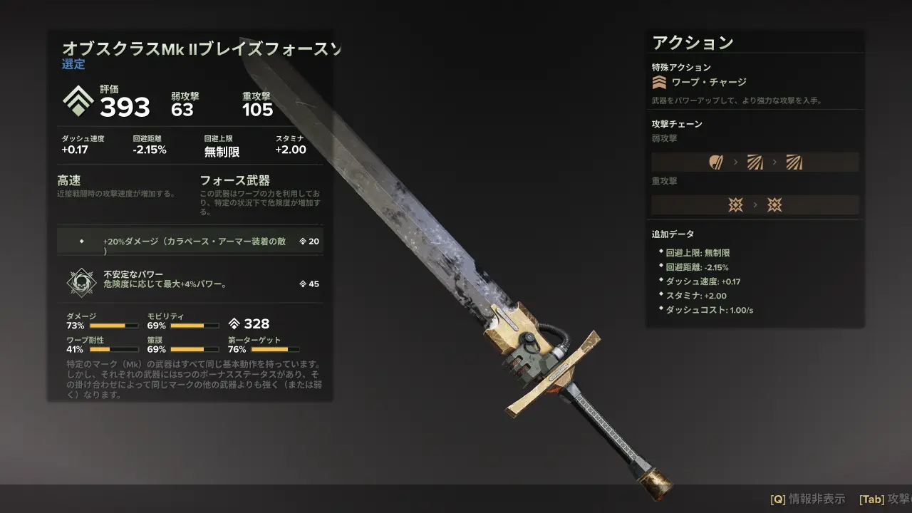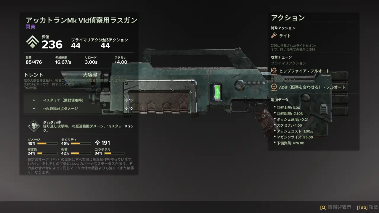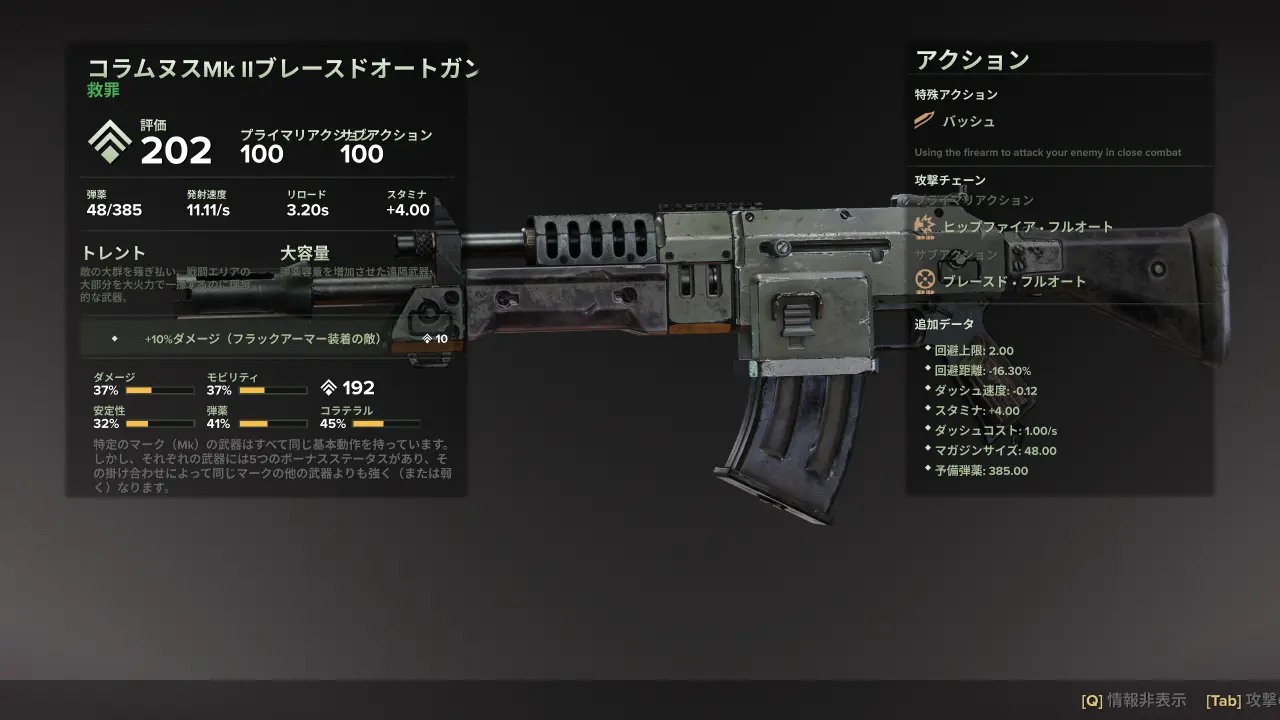 • 武器の詳細画面を16:9のアスペクト比で撮影したものを使用する。