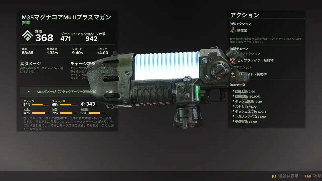 カテゴリ:武器 遠隔武器 プラズマガン 高ダメージ チャージ攻撃