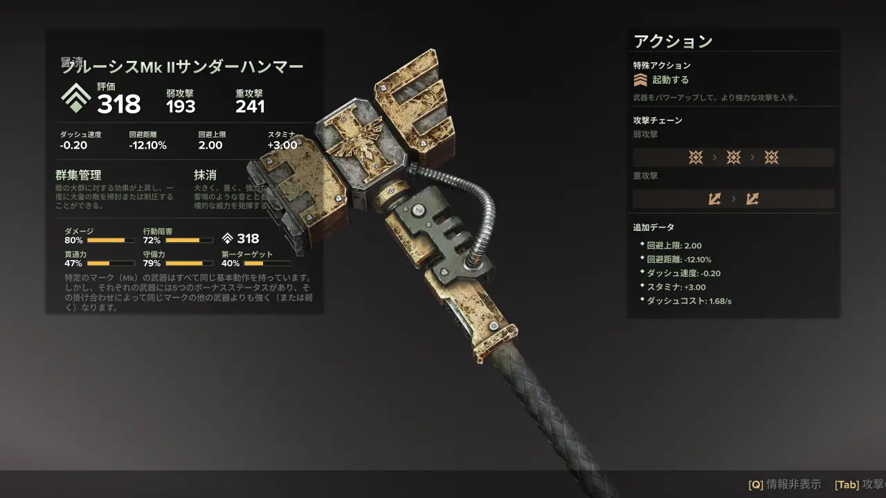 クルーシスMk IIサンダーハンマーは『Warhammer 40,000: Darktide』で使用可能な近接武器の1つ。