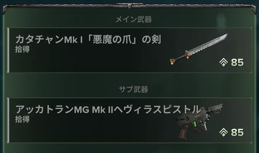 オルドドケットと引き換えに、「メルク卿リクイジトリアム」では提示されたウィークリーチャレンジを完了することで貰える専用の通貨と引き換えに武器やその他の装備品を入手できる。
