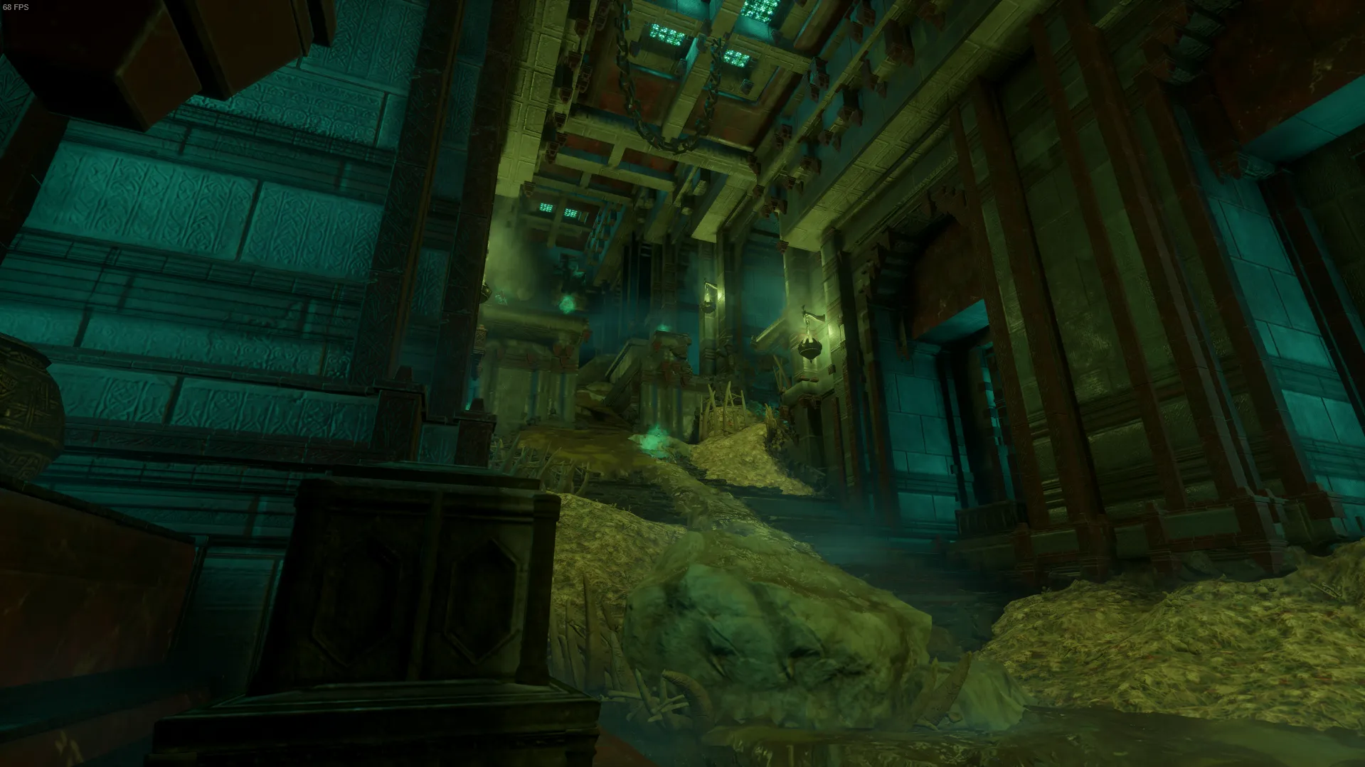上手く上に登ってフックを使いながら道なりに進むとレベル15の金の棺がある。