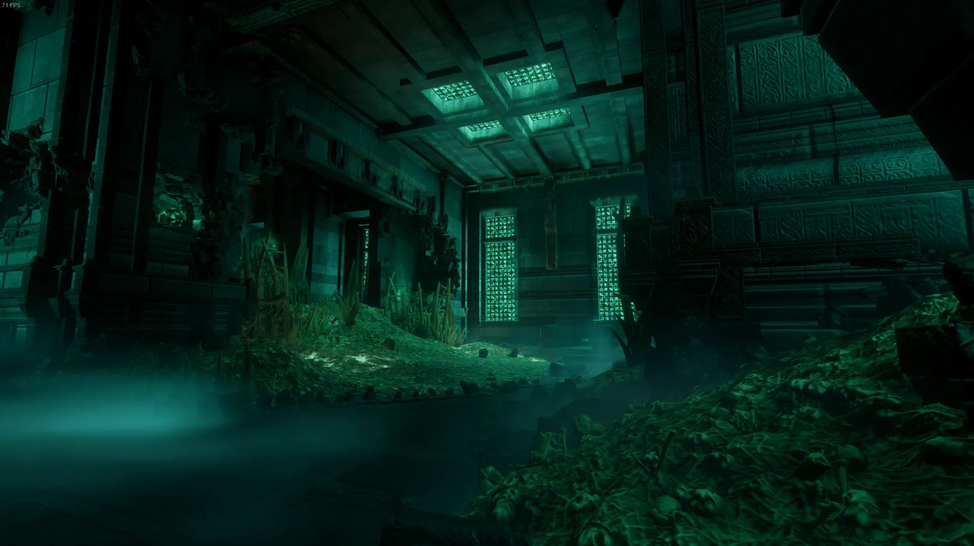 障壁の手前にいる10体のスケルトンの頭上に解除ルーンがあり、これらをすべて倒すと先に進める。