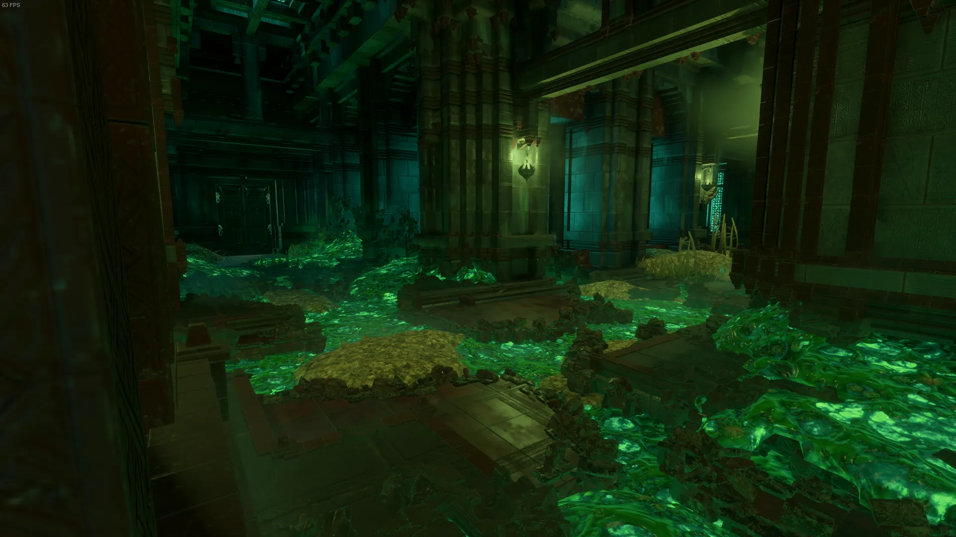 扉を開けて先に進むと毒スライムに侵蝕された足場の悪い通路に出る。