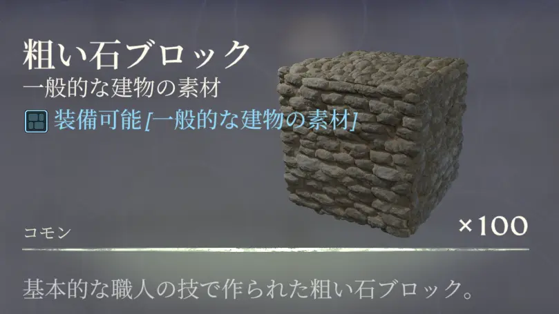 ![]() 粗い石ブロック | 石を入手する。 |