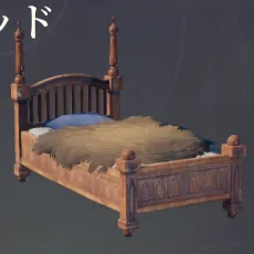 華やかな木製のベッドは『Enshrouded~霧の王国~』で入手可能なアイテムのひとつ。