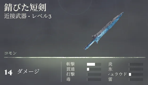 ![]() 錆びた短剣 | 1~25 | コモン | #inc_infobox Error: Key Not Found (attribute) | 1:毒ダメージ | #inc_infobox Error: Key Not Found (important) |