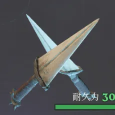 この武器によるダメージは器用さの特性値によって変わる。パリィした後に特別な攻撃を行うことができる。